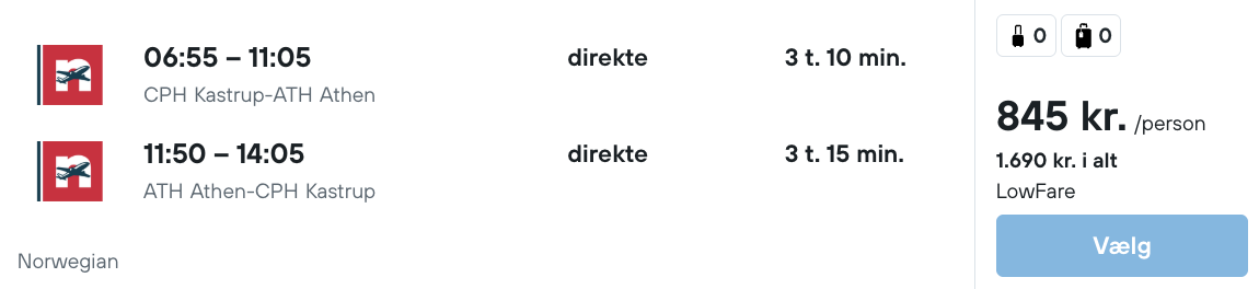 Flyprisen inkluderer kun en lille taske, men bagage kan tilkøbes.