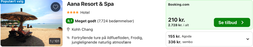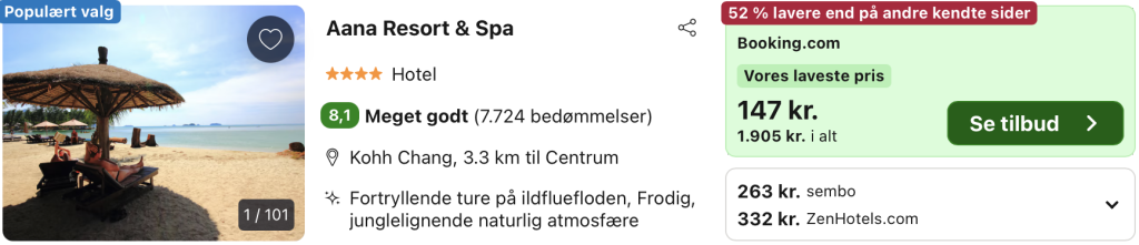Aana Resort & Spa Koh Chang tilbyder en uforglemmelig ferieoplevelse, hvor afslapning, eventyr og thailandsk gæstfrihed mødes i en perfekt harmoni. Beliggende på den idylliske ø Koh Chang, som er en af Thailands største og mest betagende øer, tilbyder dette luksuriøse resort en betagende udsigt over den tropiske natur og det turkisblå hav, hvilket gør det til et ideelt valg for dem, der ønsker at nyde en rolig ferie væk fra hverdagens travlhed.