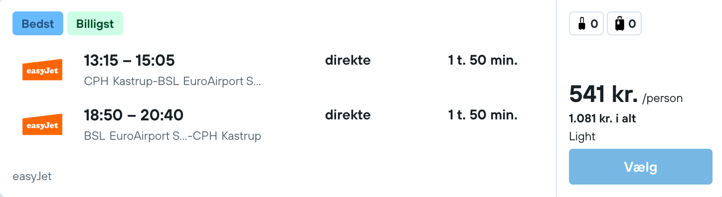 På vores flysøgningsmaskine har vi fundet billige flybilletter fra København til Basel: