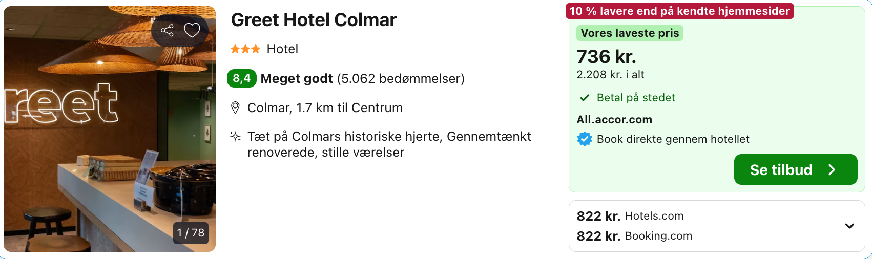 | Bemærk: Husk at lade søgningen blive helt færdig. Der kan være mindre prisforskelle på mobil og pc. Undersøg med fordel, hvor det er billigst inden bestilling. Vælg Laveste Pris på Trivago.
