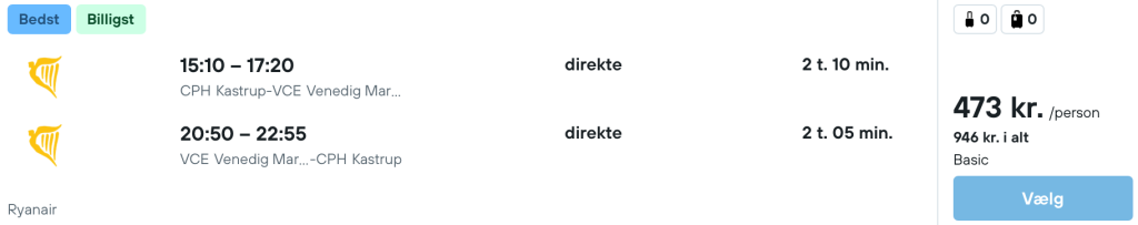 På vores flysøgningsmaskine har vi fundet billige flybilletter fra København til Venedig
