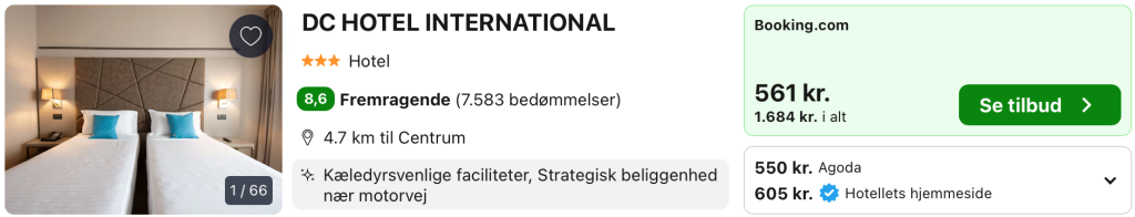 Vælg Laveste Pris på Trivago. Der kan være mindre prisforskelle på mobil og pc. Undersøg med fordel, hvor det er billigst inden bestilling.
