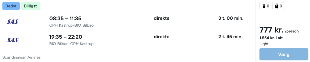 Flyprisen inkluderer kun en lille taske, men bagage kan tilkøbes.