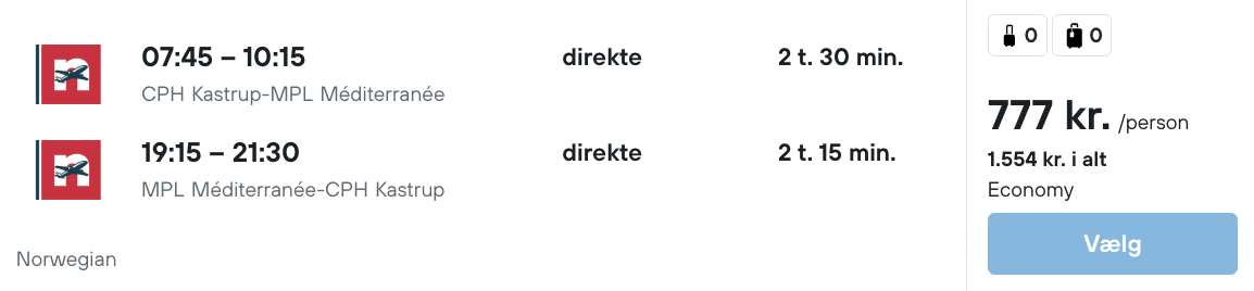 På vores flysøgningsmaskine har vi fundet billige flybilletter fra København til Montpellier: