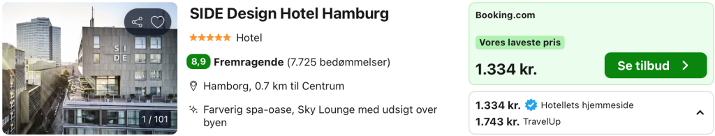 Vi har taget udgangspunkt i et ophold fra den 22. – 23. marts på Side Design Hotel i Hamburg, der er et stilfuldt og moderne byhotel, der kombinerer urban elegance med en afslappet atmosfære.