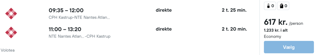 På vores flysøgningsmaskine har vi fundet billige flybilletter fra København til Nantes: