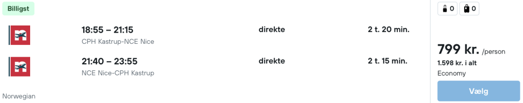 Billeje er også et godt bud, da det er meget billigt. Husk at tilpasse datoer og flytider, så de passer med dine afgange.