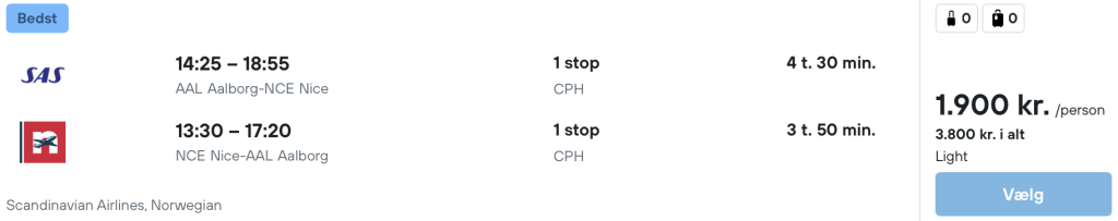 På vores flysøgningsmaskine har vi fundet billige flybilletter fra København og Aalborg til Nice.