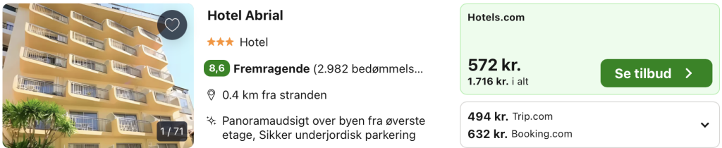 Hvis rejsen er med “Vis rejse” link, så er der tale om en pakkerejse, hvor fly og hotel bestilles på en gang.