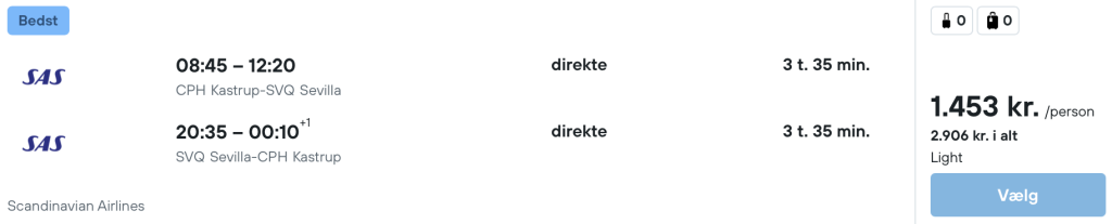 På vores flysøgemaskine har vi fundet billige flybilletter fra København og Billund til Sevilla:
