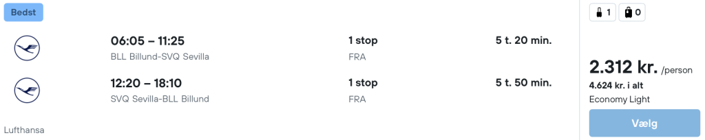 Flyprisen inkluderer kun en lille taske, men bagage kan tilkøbes.