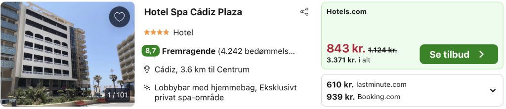 Hvis rejsen er med “Vis rejse” link, så er der tale om en pakkerejse, hvor fly og hotel bestilles på en gang.