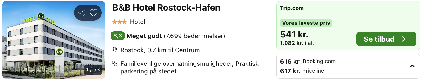 Bemærk: Den samlede pris for opholdet er 1.082,- for 2 personer i et dobbeltværelse, hvilket svarer til 541,- per person. Der kan være mindre prisforskelle på mobil og pc. Undersøg derfor med fordel, hvor det er billigst for at opnå den bedste pris. Rejs365 er ikke et rejsebureau, men en rejseside, der finder gode tilbud! – Vi modtager kommission, men det påvirker ikke din pris! Læs mere her |