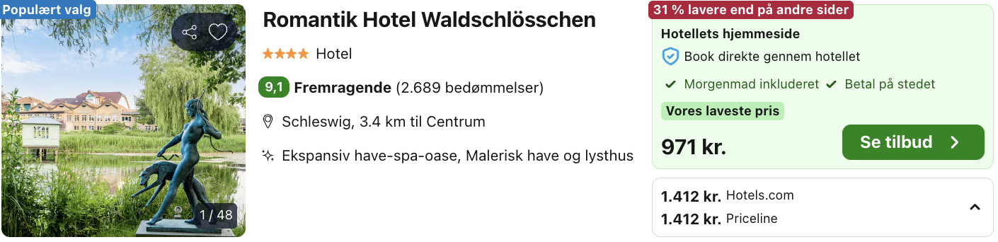 Romantik Hotel Waldschlösschen ligger idyllisk i Sleswig og kombinerer komfort, elegance og afslapning.