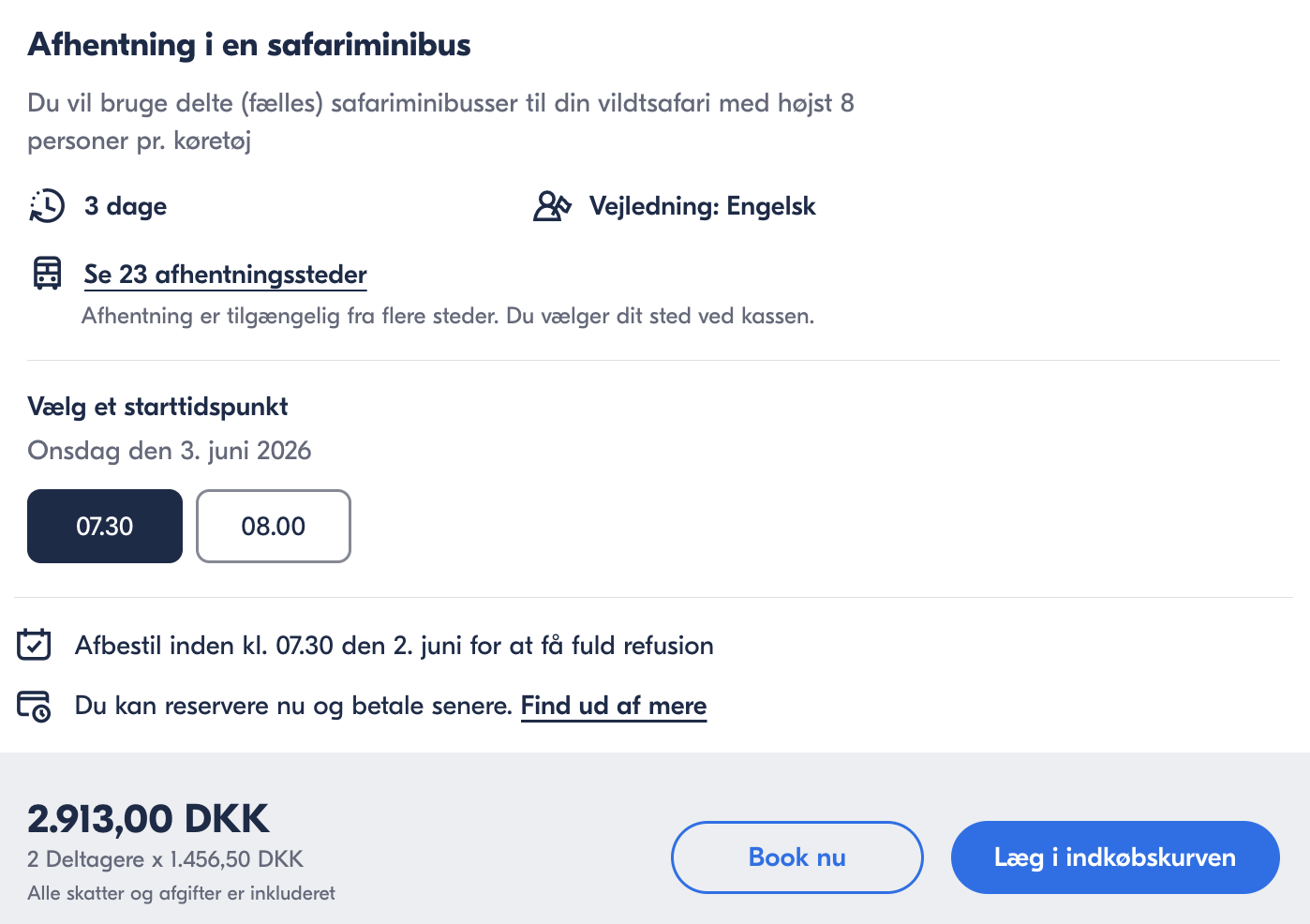 Safarituren er fra 3. – 5. juni – der er andre datoer til samme priser.