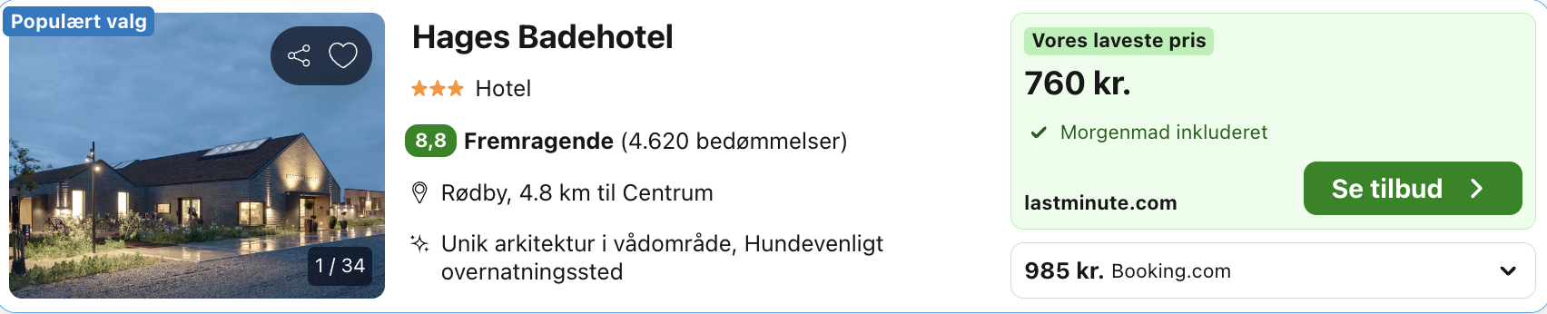 Bemærk: Den samlede pris for opholdet er 760,- for 2 personer i et dobbeltværelse, hvilket svarer til 380,- per person. Der kan være mindre prisforskelle på mobil og pc. Undersøg med fordel, hvor det er billigst inden bestilling. Rejs365 er ikke et rejsebureau, men en rejseside, der finder gode tilbud! – Vi modtager kommission, men det påvirker ikke din pris! Læs mere her