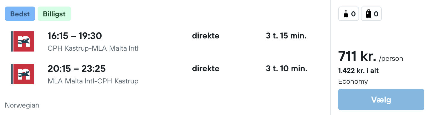 På vores flysøgningsmaskine har vi fundet billige flybilletter fra København til Malta: