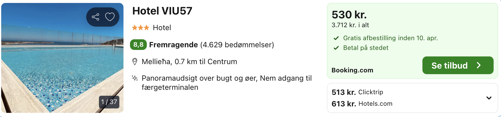 Husk at lade søgningen blive helt færdig. Vælg “Vores laveste pris” på trivago, for at opnå den bedste pris på hotellet. Der kan være mindre prisforskelle på mobil og pc.