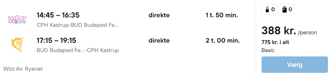 Flyprisen inkluderer en lille taske, men håndbagage kan tilkøbes.