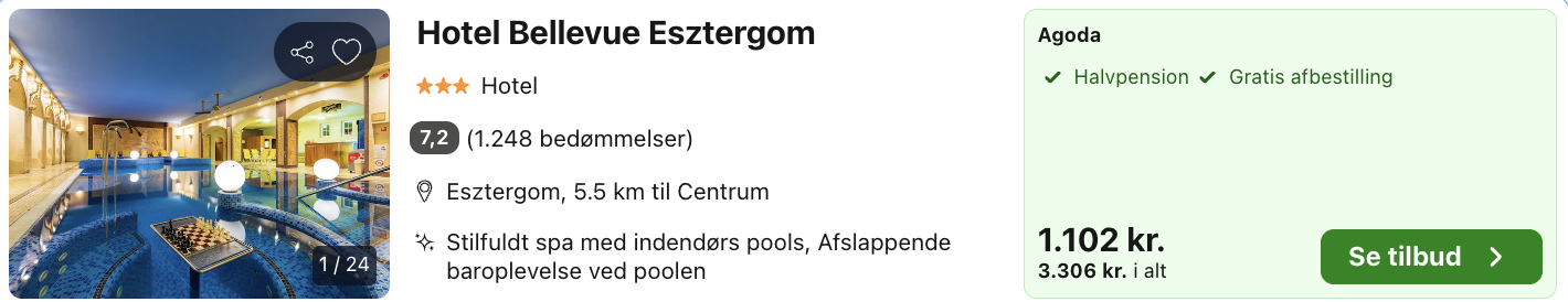 4 dages forlænget weekend i Esztergom for kun 2.041,- per person inkl. fly og godt 3-stjernet hotel med halvpension samt lækkert spa- og poolområde!