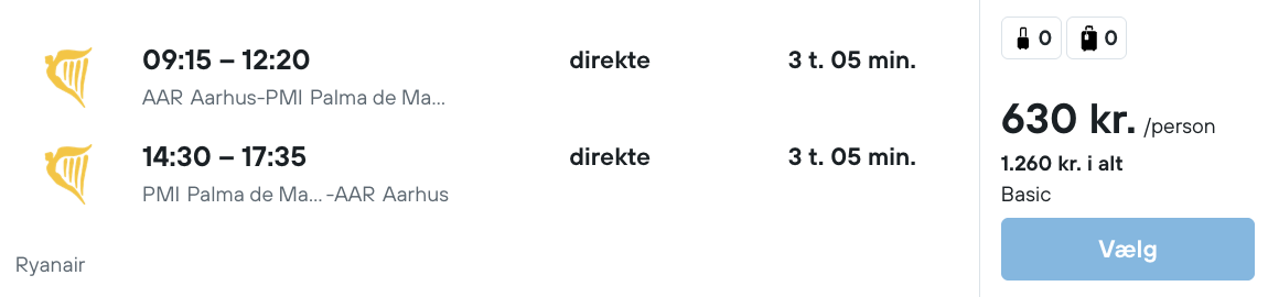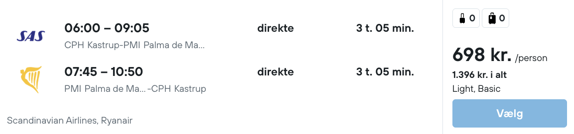 Flyprisen inkluderer kun en lille taske, men bagage kan tilkøbes.