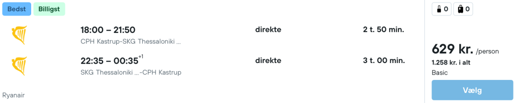 På vores flysøgemaskine har vi fundet billige flybilletter fra København til Thessaloniki: