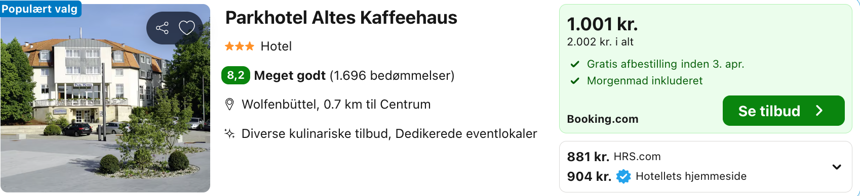 Parkhotel Altes Kaffeehaus forener klassisk charme med moderne komfort i hjertet af Wolfenbüttel. Hotellet ligger et par minutters gang fra den gamle bydel og Okerfloden, så du har slot, hovedkirke og hyggelige stræder lige ved døren. Værelserne er lyse og rolige med gode senge, skriveplads og gratis wi-fi, og dagen begynder med en frisk morgenbuffet med brød fra bageren, frugt og varme retter. I restauranten kan du nyde kaffe og kage om eftermiddagen og sæsonprægede favoritter om aftenen. Parkering er bekvem, og togstationen nås let.