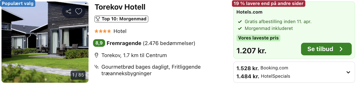 | Bemærk: Den samlede pris for opholdet er 1.207,- for 2 personer i et dobbeltværelse, hvilket svarer til 604,- per person.
