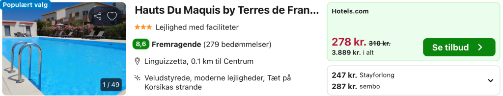 2 uger på Korsika for kun 3.603,- per person inkl. direkte fly og 3-stjernet lejlighedshotel med pool!
