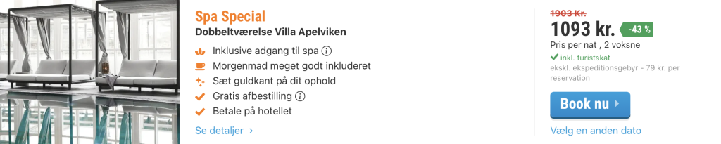 Bemærk: Den samlede pris for overnatningen er 1.171,- for 2 personer i et dobbeltværelse med morgenmad, hvilket svarer til 586,- per person. Rejs365 er ikke et rejsebureau, men en rejseside der finder gode tilbud! – Vi modtager kommission, men det påvirker ikke din pris! Læs mere her