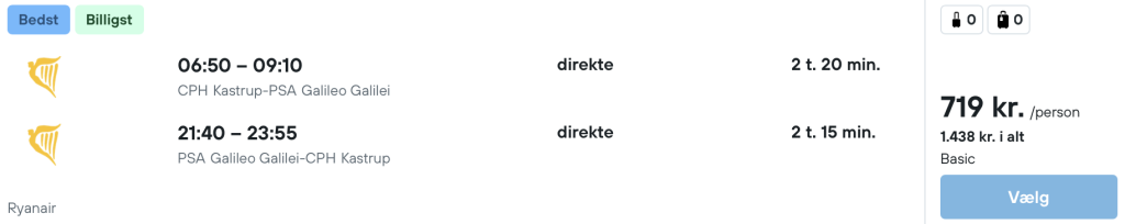 På vores flysøgemaskine har vi fundet billige flybilletter fra København til Pisa: