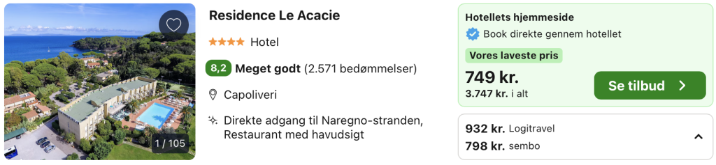 Husk at logge ind / oprette en gratis bruger på trivago samt hos hoteludbyderen. Derved opnås den bedste pris! Rejs365 er ikke et rejsebureau, men en rejseside, der finder gode tilbud! – Vi modtager kommission, men det påvirker ikke din pris! Læs mere her