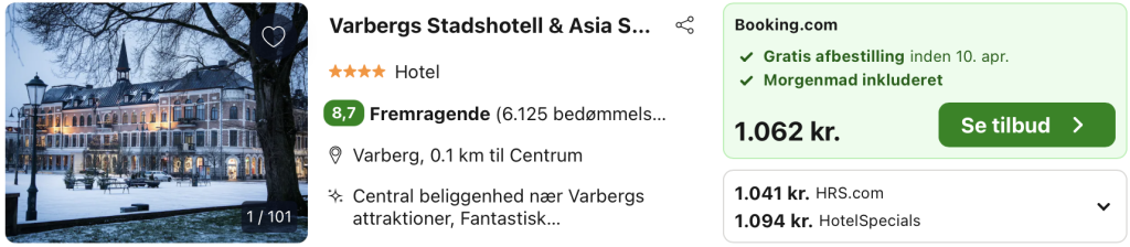 Vi har taget udgangspunkt i et ophold fra 12. – 13. april på Varbergs Stadshotell & Asia Spa, der ligger centralt i Varberg, kun få minutters gang fra havet, fæstningen og byens hyggelige gågader. Hotellet kombinerer klassisk charme fra det historiske byhus med moderne luksus og en afslappet atmosfære. Værelserne er elegant indrettet med komfortable senge, dæmpede farver og stilfulde detaljer, som giver en rolig ramme om opholdet – perfekt til både weekendophold og længere pauser fra hverdagen.