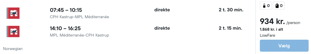 På vores flysøgningsmaskine har vi fundet billige flybilletter fra København til Montpellier:
