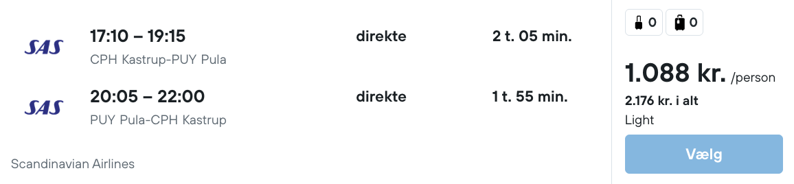 Flyprisen inkluderer kun en lille taske, men bagage kan tilkøbes.