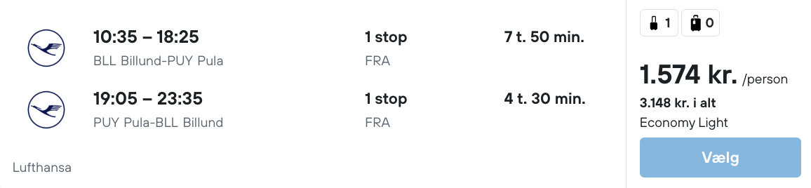 På vores flysøgningsmaskine har vi fundet billige flybilletter fra Billund til Pula:
