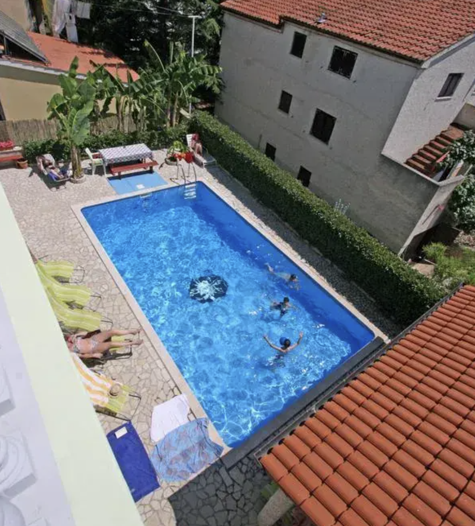 På stedet kan du slappe af ved den udendørs pool, nyde solen på terrassen eller benytte grillområdet til hyggelige aftener. Der er gratis parkering, grønne udendørsarealer og en rolig atmosfære, som gør Apartments & Rooms Lo & Mar til en ideel base for en afslappet ferie med fokus på strand, natur og lokale oplevelser.