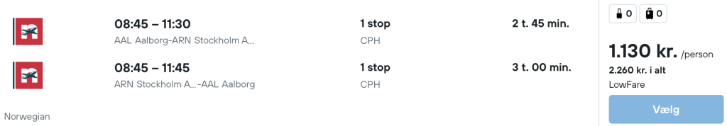 Vi har fundet billige flybilletter fra København, Billund og Aalborg til Stockholm: