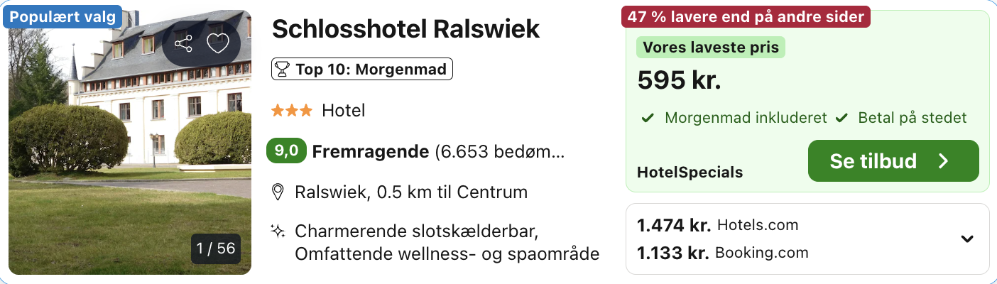 Schlosshotel Ralswiek er et majestætisk hotel, der ligger i den maleriske landsby Ralswiek på den tyske ø Rügen. Hotellet er et sandt slot, der tilbyder en uforglemmelig ferieoplevelse i en unik kombination af historisk charme og moderne luksus. Beliggende tæt på Østersøens smukke strande og den naturlige skønhed, der kendetegner Rügen, er dette hotel den perfekte base for dem, der søger både afslapning og eventyr i et af Tysklands mest betagende landskaber.