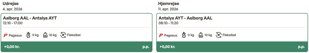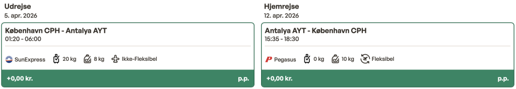 Hvis rejsen er med “Vis rejse” link, så er der tale om en pakkerejse, hvor fly og hotel bestilles på en gang.