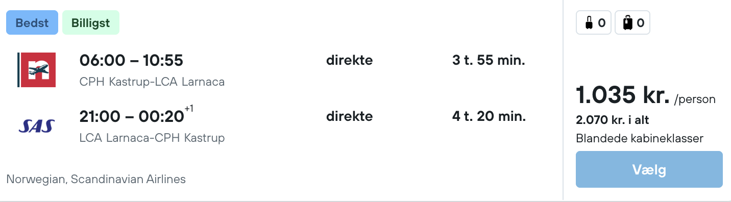Flyprisen inkluderer kun en lille taske, men bagage kan tilkøbes.