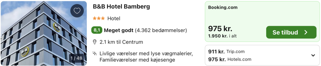 Bemærk: Den samlede pris for hotellet er 1.822,- for 2 personer i et dobbeltværelse hvilket svarer til 911,- per person. Rejs365 er ikke et rejsebureau, men en rejseside, der finder gode tilbud! – Vi modtager kommission, men det påvirker ikke din pris! Læs mere her
