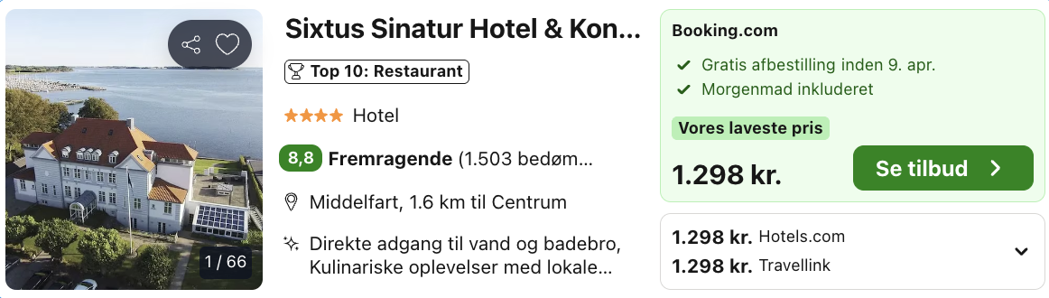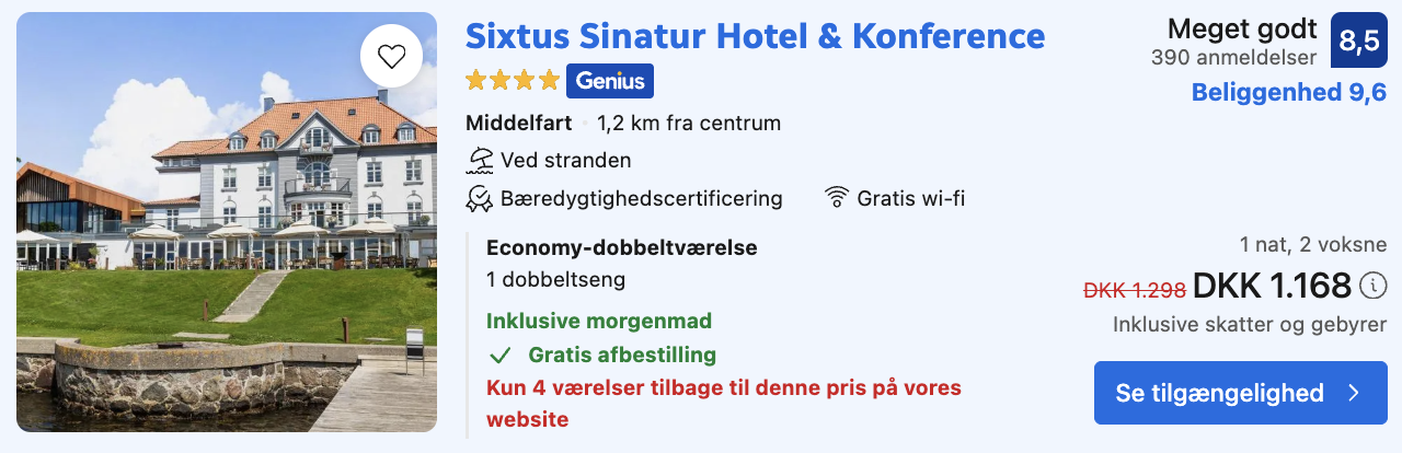 Husk at logge ind / oprette en gratis bruger på trivago samt hos Booking.com. Derved opnås den bedste pris!