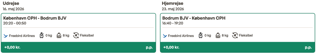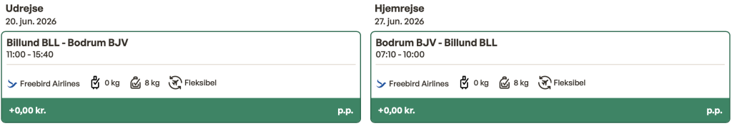 Hvis rejsen er med “Vis rejse” link, så er der tale om en pakkerejse, hvor fly og hotel bestilles på en gang.