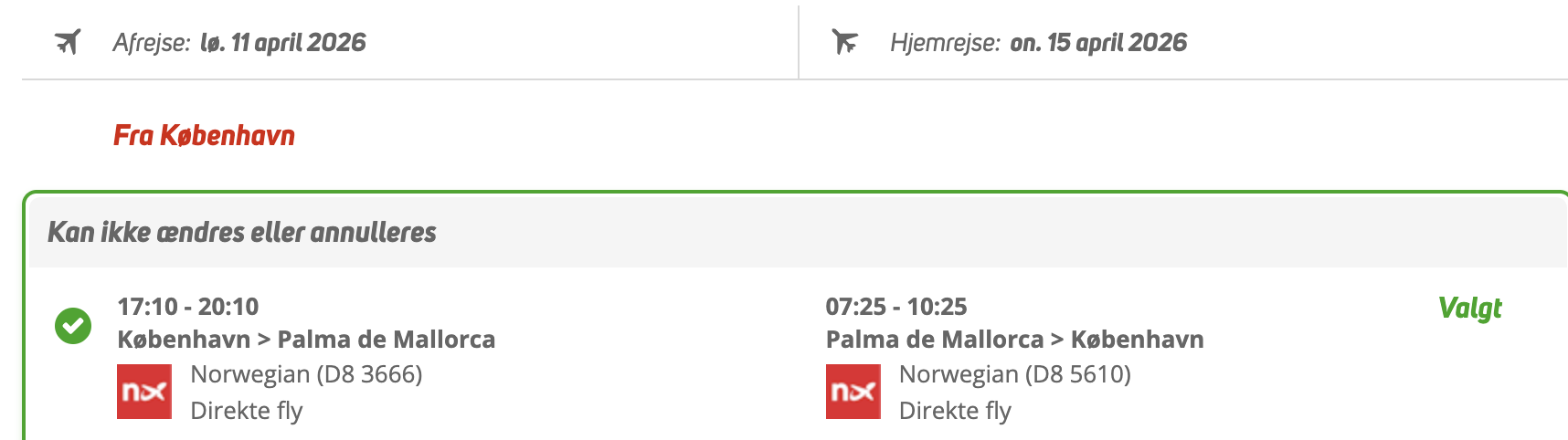 Hvis rejsen er med “Vis rejse” link, så er der tale om en pakkerejse, hvor fly og hotel bestilles på en gang.