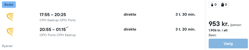 Vi har fundet billige flybilletter fra København til Porto:
