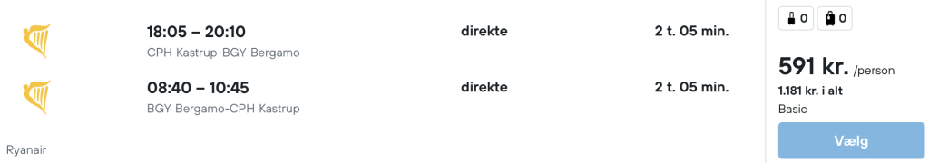 Flyprisen inkluderer kun en lille taske, men bagage kan tilkøbes.