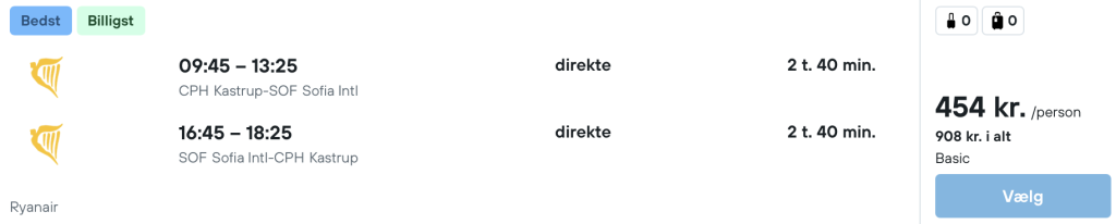 Vi har fundet billige flybilletter fra København til Sofia: