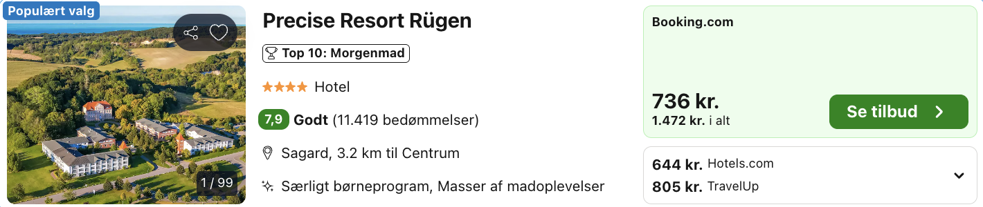 Bemærk: Den samlede pris for opholdet er 1.288,- for 2 personer i et dobbeltværelse, hvilket svarer til 644,- per person. Der kan være mindre prisforskelle på mobil og pc. Undersøg med fordel, hvor det er billigst inden bestilling. Rejs365 er ikke et rejsebureau, men en rejseside, der finder gode tilbud! – Vi modtager kommission, men det påvirker ikke din pris! Læs mere her |