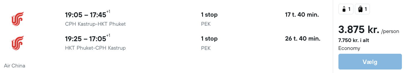 Hvis rejsen er med “Vis rejse” link, så er der tale om en pakkerejse, hvor fly og hotel bestilles på en gang.